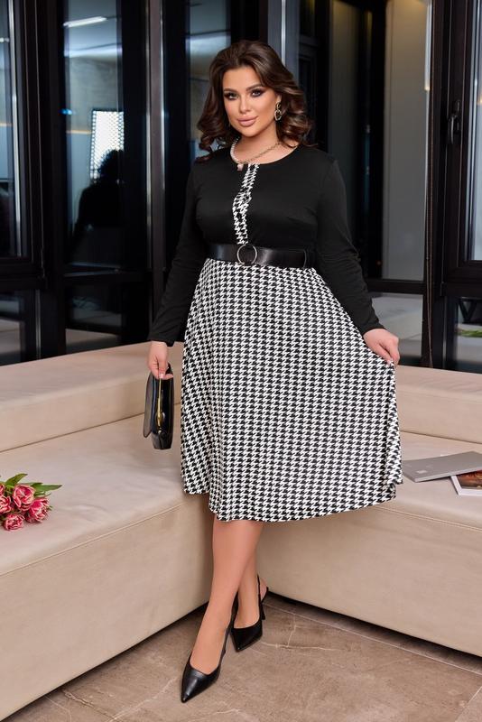 ✨ Элегантное комбинированное платье для вашего гардероба! ✨ 💎 Идеальное платье из качественного французского трикотажа для стильного и комфортного образа. Модель: 488 🌟 Комбинированное платье с поясом в комплекте - это сочетание удобства, элегантности и трендового дизайна. Ткань: французский трикотаж 🎀 Мягкая и приятная к телу ткань, обеспечивающая комфорт и обладающая легкой растяжимостью (+4 см). Размер: 48-50, 52-54, 56-58, 60-62 💃 Платье разработано специально для женщин plus-size, которые хотят выглядеть изящно и модно. Кольори: Верх черный Верх "гусяча лапка" Длина: 🔹 Сукня — 111 см 🔹 Рукав - 59 см Фактические замеры изделия: 🔸 р.48-50: ОГ-ОТ: 100-92 см 🔸 р.52-54: ОГ-ОТ: 106-98 см 🔸 р.56-58: ОГ-ОТ: 112-104 см 🔸 р.60-62: ОГ-ОТ: 118-110 см ⚠️ Примечание: Платье имеет А-силуэт, поэтому объем бедер (ОС) не учитывается. 📏 Данные модели на фото: 🔹 Рост: 173 см 🔹 Параметры: ОГ-ОТ-ОС: 110-88-111, одетая в размер 52-54