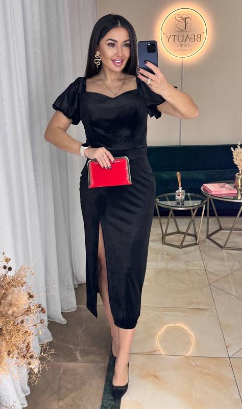 Модель 800 Женское платье Размерный ряд S,M,L,XL Тканина оксамит Цвет красный и черный Платье с разрезом по ножке, рукава на гибкой резинке Супер качество