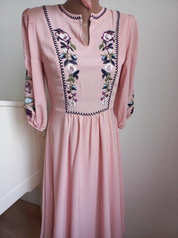 Di Mare шикарное платье миди с вышивкой S-M-размер Отличное состояние На подкладе Нету 1 пуговицы на спине! Безупречное качество+++ Ткань шифоновая-100% полиестр длина-103 плечи-36 пог-46 пот-36-38 поб-свободно