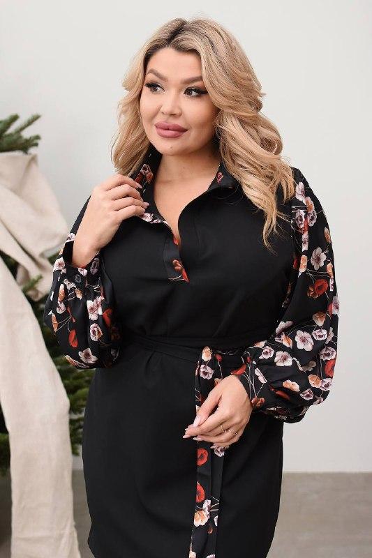Сукня з поясом та объємними рукавами Тканина: крєп-костюмка та шовк Розміри:48/50;52/54;56/58 48/50: Ог-106 От-104 Ос-106 Рукав-63 Довжина-93 Далі + 6 см шм