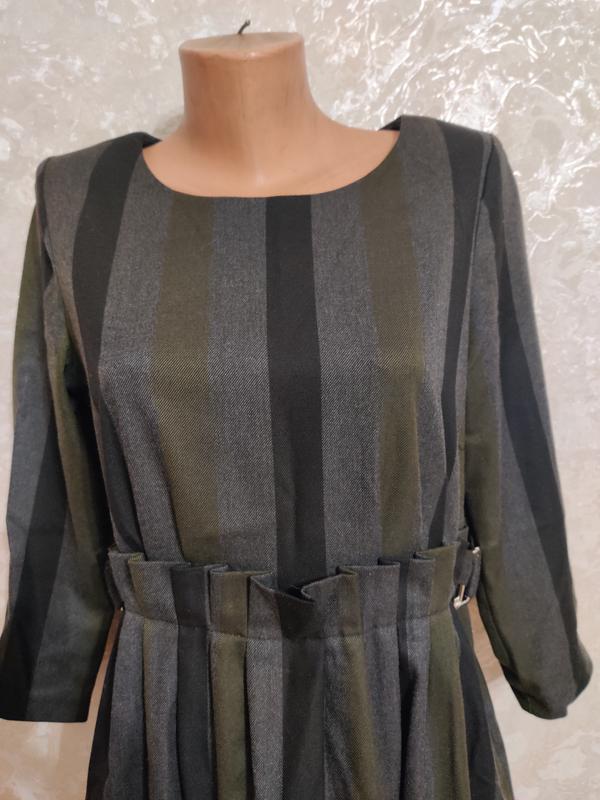 Плаття в ідеальному стані.Підійде як і на щодня,так і для урочистостей.Дуже хорошої якості,зовсім не кошлатиться,дуже гарно лягає по фігурі,приємне до тіла.З карманами по боках і блискавка з лівого боку.Виробник Білорусія.Дожина 102см,рукав 50см,в грудях94см,талія84см.