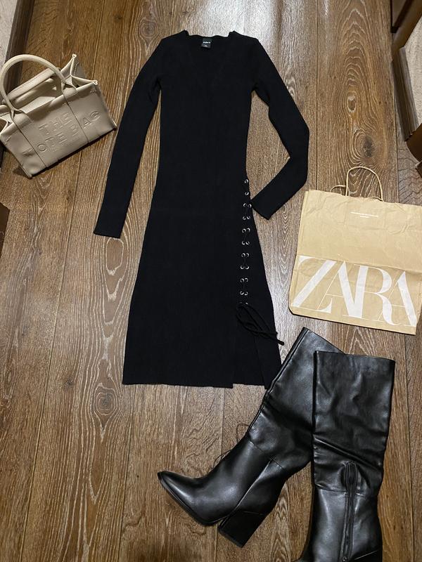 Сукня міді в рубчик з розрізом фірми zebra xs