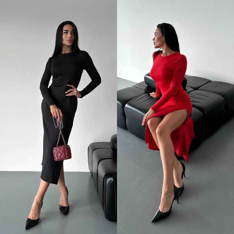 🥰Надзвичайно чарівна та витончена сукня міді з розрізом, яка не залишить вас без уваги📸 Ніжна та вишукана сукня стане незамінною у вашому гардеробі👑 ▪️Колір: чорний, червоний ▪️Тканина: щільний мікродайвінг ▪️Розмір: 42-46 (єдиний) ▪️Виробник: Україна Реальне фото