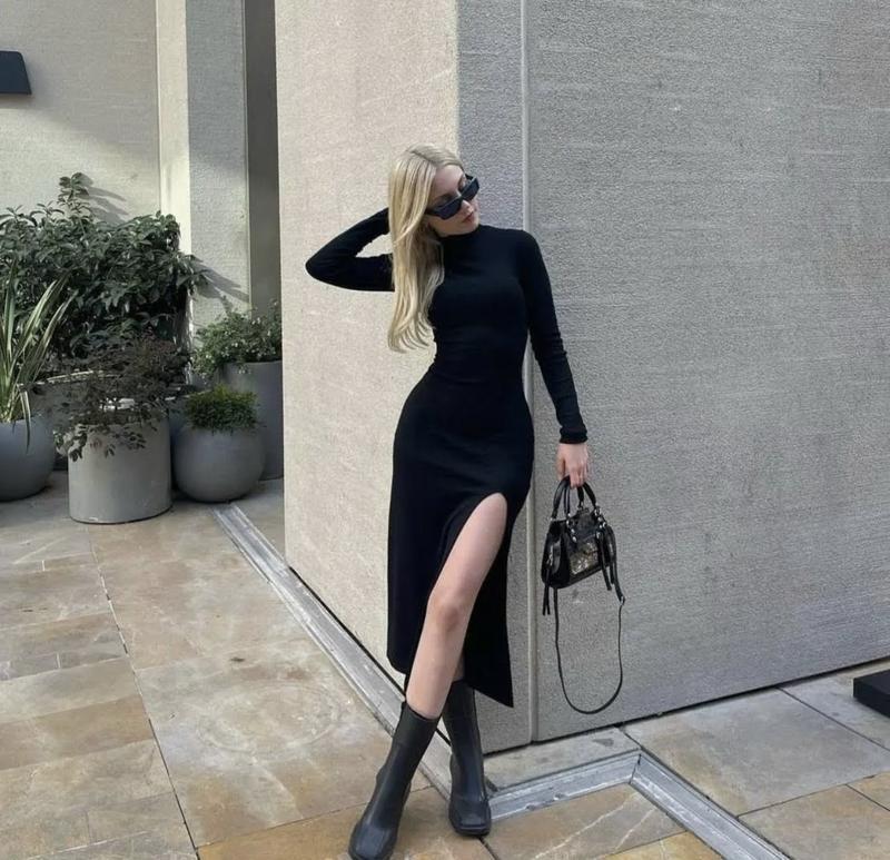 Платье миди в рубчик с разрезом