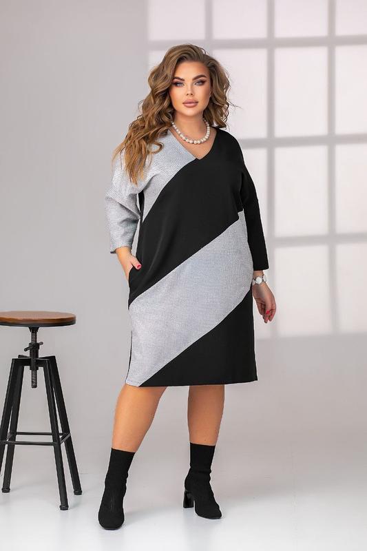 Модель: 165 Невероятное платье свободного кроя как для праздников так и для встреч в ней вы будете прекрасна. Тканина:костюмка+люрикс Размеры:46-48;50-52;54-56;58-60 46-48 Объем груди 110см Объем бёдер 116см Длина изделия 102см Длина рукава 56 см 50-52 Объем груди 116см Объем бедер 120см Длина изделия 104см Длина рукава 58см 54-56 Объем груди 122см Объем бёдер 126см Длина по переду 106 см Длина рукава 59 см 58-60 Объем груди 134 см Объем бедер 144 см Длина по переду 107см Длина рукава 60 см