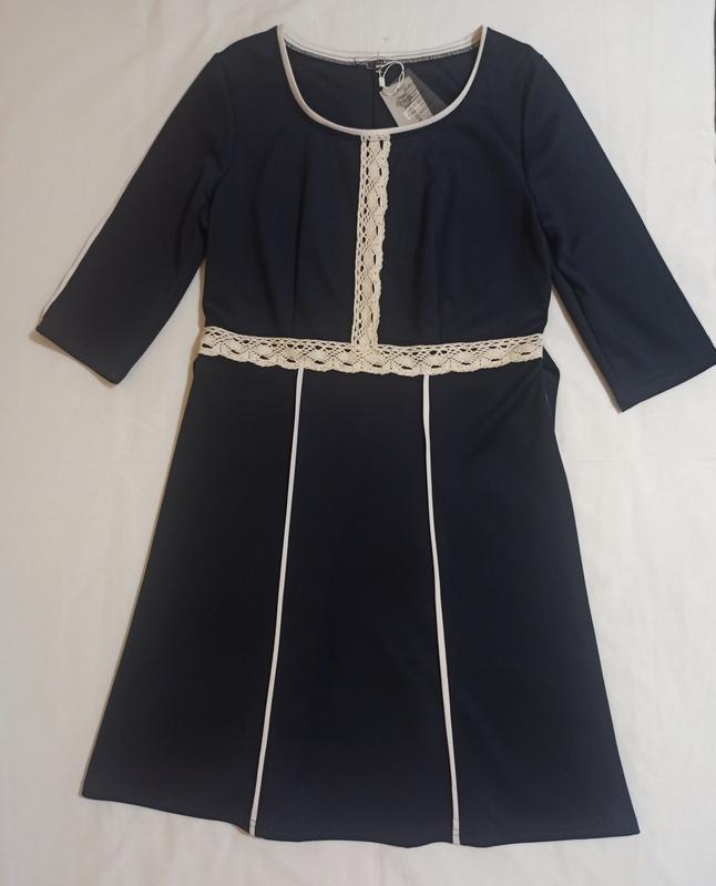 Красивое синее платье с белым кружевом с пояском платье стрейч эластик женское