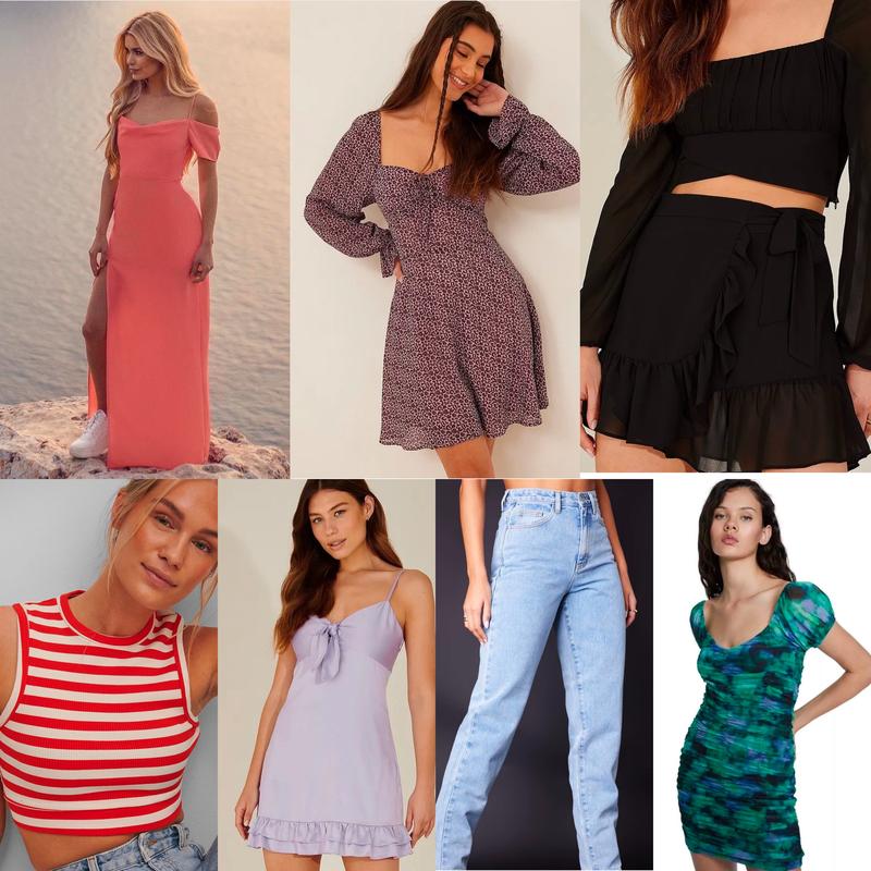 Лот речей, всі нові речі з бірками. Леопардова сукня Xs Na-Kd Чорна спідниця Xs Na-Kd Смугастий топ S Na-Kd Джинси Xs Pretty little thing Сукня Na-Kd Xs Сукня Na-Kd Xs