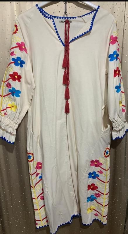 Платье- лен- вышивка- очень красивая модель- 1 размер- с- но полномерная модель- на м- л ррры подходит-жно дополнять пояском -