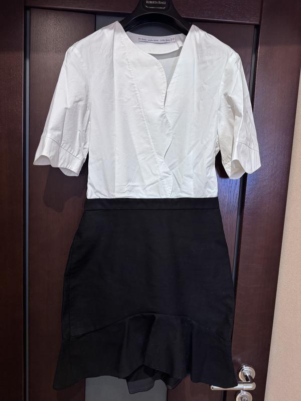 Цікава сукня & other stories з неординарним вирізом, яка імітує сорочку і юбку. Застібка таємна в боковому шві. Зроблена з 100 % котону. Юбка - плотний котон, який тримає форму, спереду трохи коротша ніж ззаду. Стан ідеальний. Заміри надам за запитом.