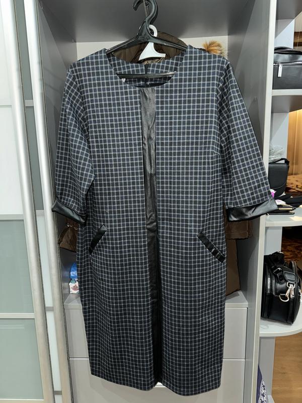 жіноча сукня футляр нарядна, жіноча стримана сукня, сукня 56 розміру, є дефект вкладка з еко шкіри місцями потріскана дивіться всі фото Напівобхват грудей 57 см Довжина 105 см Напівобхват бедер 60 см Довжина рукава від плеча 42 см