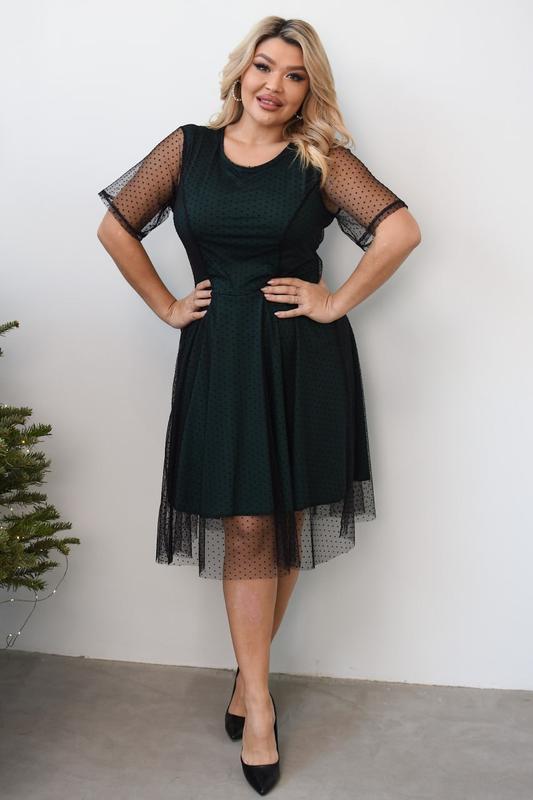 Сукня Модель:2042 Размер :48-50,52-54,56-58,60-62 Ткань:масло-трикотаж(тянется)+сетка(тянется) Длина платья :100/102/104/106 Кольори :чорний,бутилка,мармал 🎀 Элегантное платье для вашего особого дня! 🌟 Стильное и женственное платье с легкой сеткой в горошек. Идеально подходит для праздничных мероприятий, романтических встреч или особенных моментов в вашей жизни. ✨ • Ткань: качественный материал, обеспечивающий комфорт. • Дизайн: легкая сетка добавляет элегантности. • Фасон: подчеркивает фигуру и создает утонченный силуэт. Замеры: 48-50 ОГ от 103 52-54 ОГ от 113 56-58 ОГ от 123 60-62 ОГ от 133
