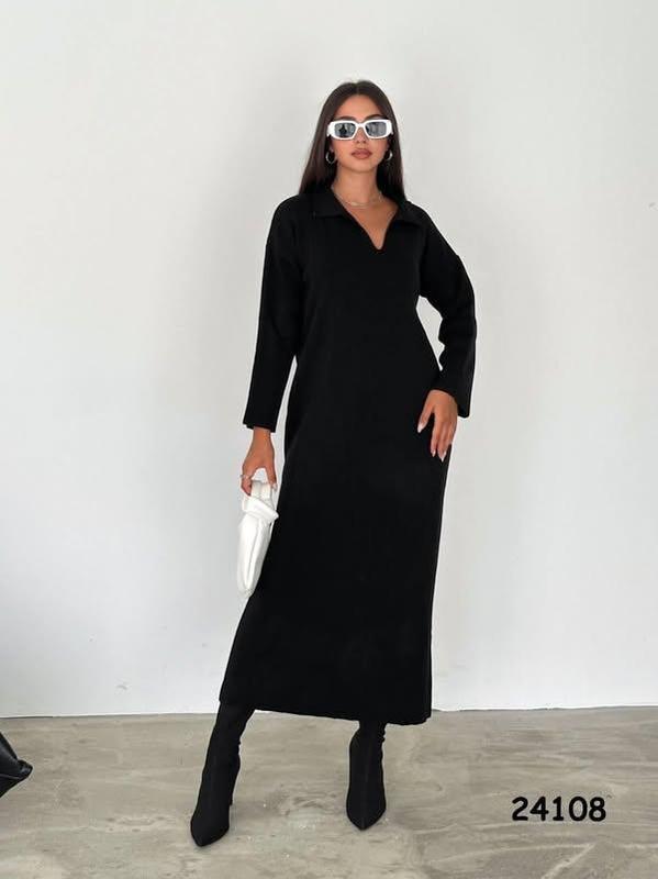 Базовое вязаное платье прямого, свободного кроя с воротником. Платье турецкого производства. Ткань: машинная вязка (50% хлопок, 50% акрил) Размер: один универсальный. На груди до 110 см На бедра до 110 см Длина платья: 125-130 см Цвета: бежевый, черный и серый. Цена: 1400 грн