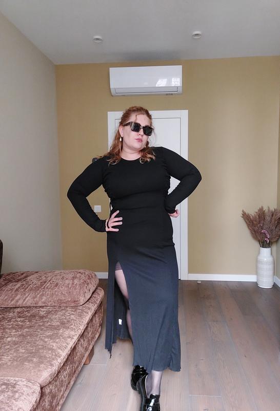 Легкое платье миди с длинными рукавами. По левой ноге разрез. Платье приталено с помощью шнуровки по бокам. Ткань эластичная, хорошо тянется. Цена: 1600 грн Производитель: Украина🇺🇦 Цвета: черный, серый, бежевый Размер: 42 (S), 44 (M), 46 (L) Состав: 70% вискоза, 25% полиэстер, 5% эластан Замеры: длина платья 135 см длина рукава 65 см