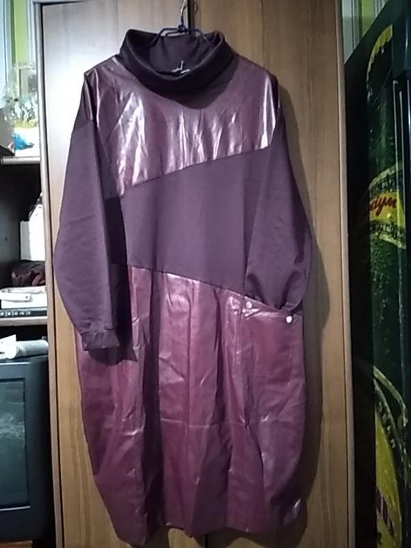 ДИ- 107 см, рукав от ворота- 70 см, ПОГ, ПОТ- 69 см, ПОБ- 71 см, низ платья заужен - 65 см Ткань приятная к телу, немного тянется, цвет насыщенный бордо! Есть один карман!