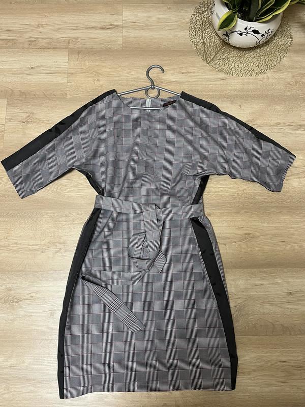 Офисное платье в гусиную лапку. Рукав 3/4. Бирки с описанием состава отсутствуют, по ощущению - полиэстр. Размер м, небольшая л, но лучше ориентироваться на замеры. Объем груди (замеры подмышками) -48 см Седницы 48-50 см, Длина от плеча - 95 см. Полная оплата на карточку при отправлении Укр-почтой. Новая почта – возможен наложенный платеж по подписке 150 грн. Отправка за счет покупателя