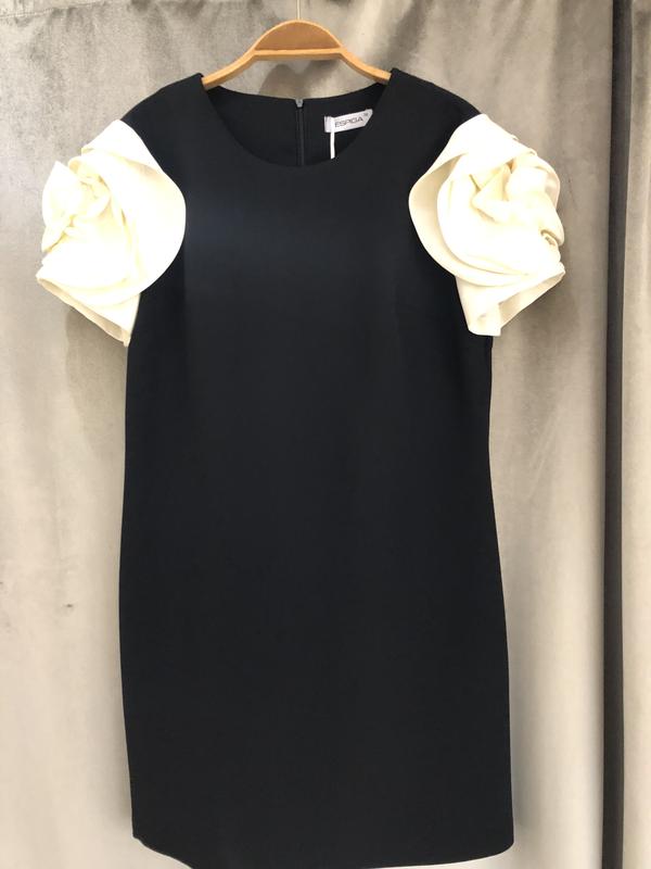 Стильное платье 👗 в стиле Chanel, черная, рукава в виде розы, белые,