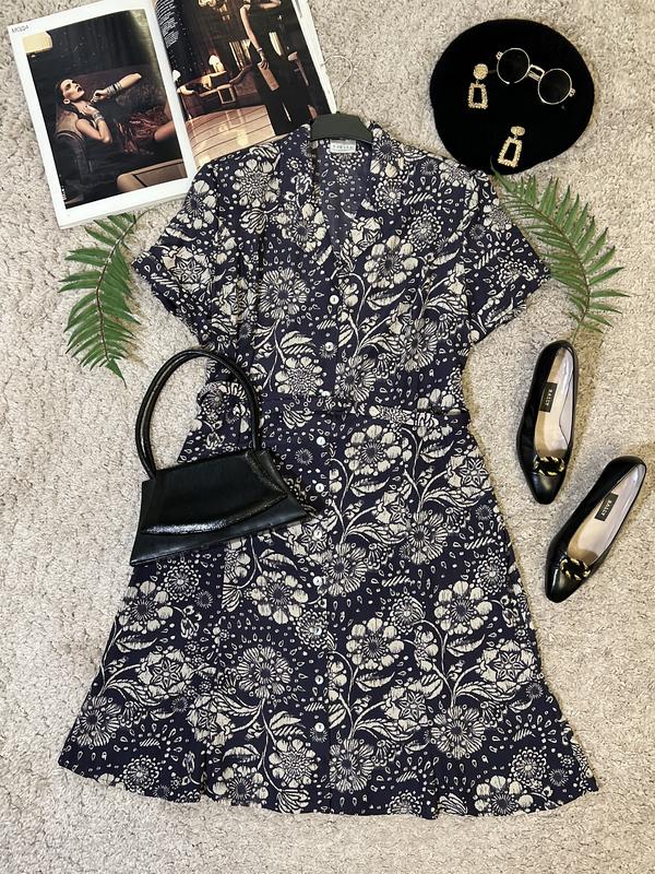 Легка вінтажна міді сукня сорочка у принт №266/118