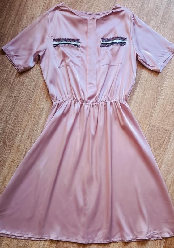 платье розовое, атласное, на резинке, размер L