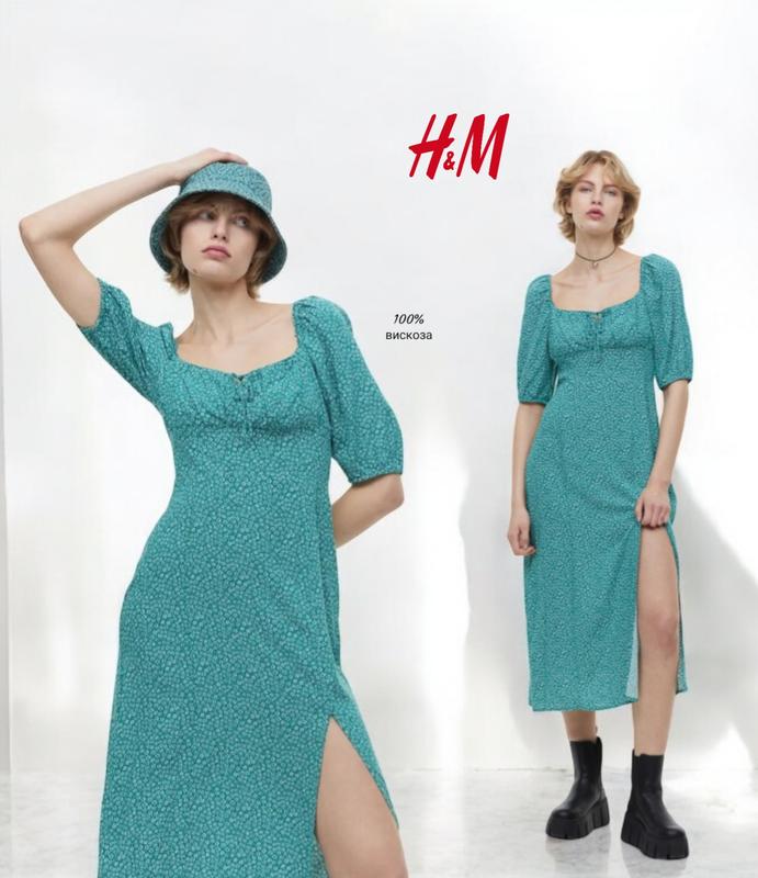 Акция 🎀 1+1=3 🎁 Внимание в магазине действует 🎀 Акция 🎀 покупаем 2 вещи выбираем третью которая по цене ниже из двух в подарок 🎁 😀😍 📌📌📌📌📌📌📌📌📌📌📌📌📌📌📌📌📌📌📌 Платье от H&M выполнено из 100% вискозы. Модель имеет приталенный силуэт, квадратный вырез и короткие рукава с легкой сборкой на плечах. На груди шнурок затяжка . Платье дополнено высоким боковым разрезом , что добавляет элегантности и легкости. Ткань имеет мелкий цветочный принт на бирюзовом фоне. Размер от производителя указан S по замерам подойдёт и на М. Состояние платье новое без бумажной бирки. По запросу отправлю детальное видео платья или сделаю дополнительное фото. Более детальные замеры отправлю в приват. Отправка : Новой почтой Укрпочтой 100% оплата на карту приват Безопасная оплата