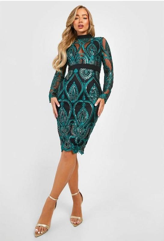 Изумрудное миди платье кружево сетка с вышивкой пайетки