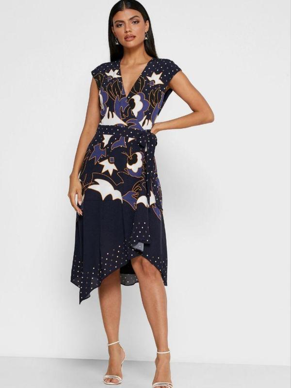Платье с асимметричным подолом Ted Baker Saretti, цвет темно-синий/мульти. Платье новое на подкладке, на запах. Пог 45, талии. 33+, длина по спинке 110, спереди асимметрия.
