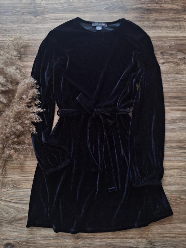 Бархатное платье с поясом на талии. Трещи объемный рукавчик с манжетами на резинках. Размер S/M ПОГ - 50 см ПОБ - 57 см Длина - 86 см Стан супер.