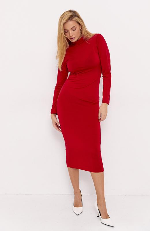Елегантна сукня довжини міді – просто знахідка для модниці! З нею ти зможеш виглядати щоразу по-новому, і при цьому завжди комфортно почуватимешся. М'яка, приємна на дотик еластична тканина цієї сукні закохує в себе з першого дотику! У моделі короткий комір-стійка. Довгі рукави та прямий низ виробу по краях оброблені подвійним швом.