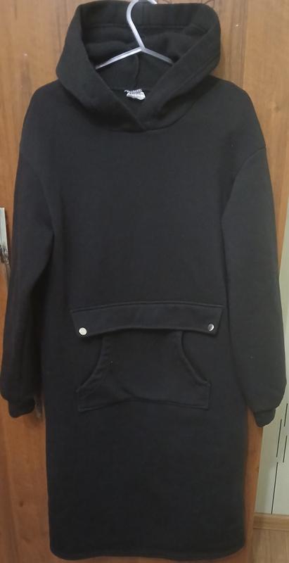 Утеплённое платье худи чёрного цвета. Размер 46-48.
