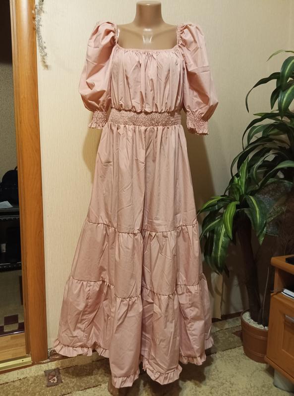Нове ,красиве святкове плаття. Красивий пудровий колір. Великий розмір. ПОГ-65см ПОТ-40см резинка тягнеться до 60см ПОБ-80см Низ вільного крою Довжина -130см Довжина рукава -35см Склад: 20%-котон 80%-поліестер