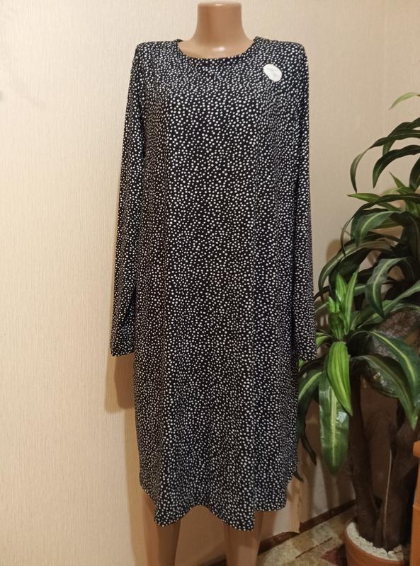 Новое оригинальное платье в горошек. Производитель Индия. Очень мягкое и приятное к телу. 87%-полиэстер 13%-еластан ПОГ-60см ПОТ-64см ПОБ-69см ПО по низу -77см Длина -98см Длина рукава от шеи -70см