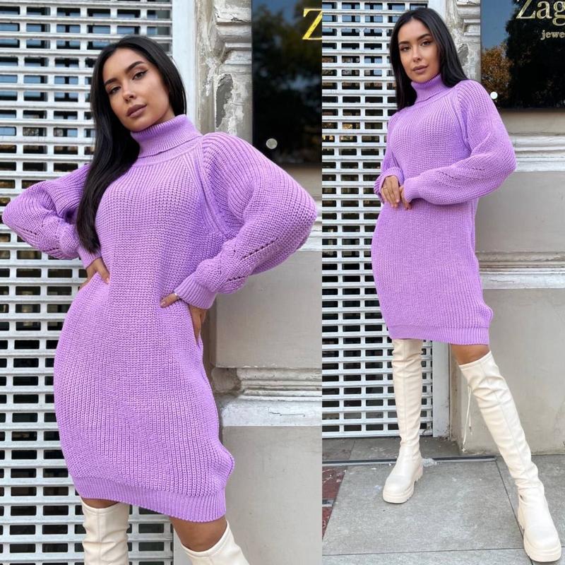 Вязаное платье с горловиной Модель 5019 modn Состав 50% шерсть, 50% акрил Размер универсальный 42-52 Цена 800 грн✨ Цвета: голубой, сирень, джинс, пудра, изумруд Употка очень красиво тянется ЗАМІРИ Длина 88 см, длина рукава 70 см., ширина 45-54 см.