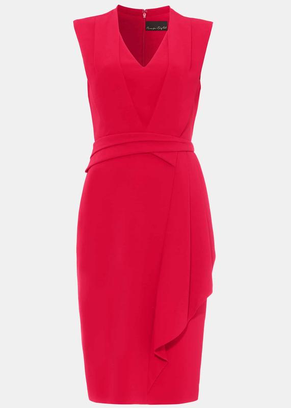 Новое брендовое алое платье миди "Phase Eight" с драпировкой. Размер uk12. Застёгивается сзади на потайную молнию. Ткань плотная с небольшой эластичностью. Замеры в нерастянутом виде: -ПОГ - 48 см; -ПОТ - 40 см; -ПОБ - 53 см; -длина - 106 см Без дефектов. Новое с биркой. *Рост манекена, на котором сделано фото - 185см.