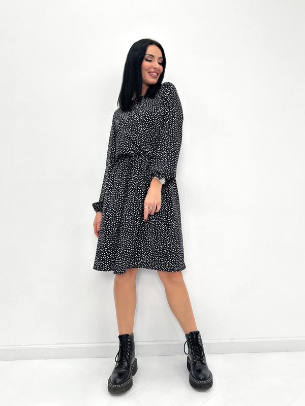 Жіноча сукня в горошок з довгим рукавом "Virginia" Арт: 8576 ✔️Поєднання елелегантного фасону та лаконічного дизайну ✔️Акцентована талія та довжина міді ✔️Легка тканина з актуальним принтом Ціна 822 грн ⠀ 🎨Кольори: чорний, фрезовий, капучино, темно-зелений, фісташковий ✂️Розміри: 42-44, 46-48, 50-52🔥 🧶Матеріал: софт ⠀ 📏Виміри: Довжина по спинці: 104-106 см Довжина рукава від горловини: 62-63 см ⠀