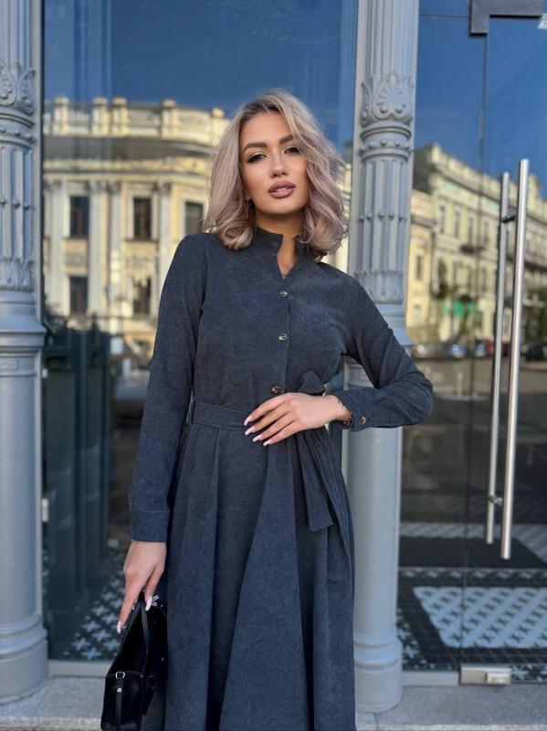 Сукня Тканина: вельвет Цвет: шоколад, графит, электрик, бутылка, фиолетовый Пояс в комплекте Размеры норма: 42-44, 46-48 Размеры батал: 50-52