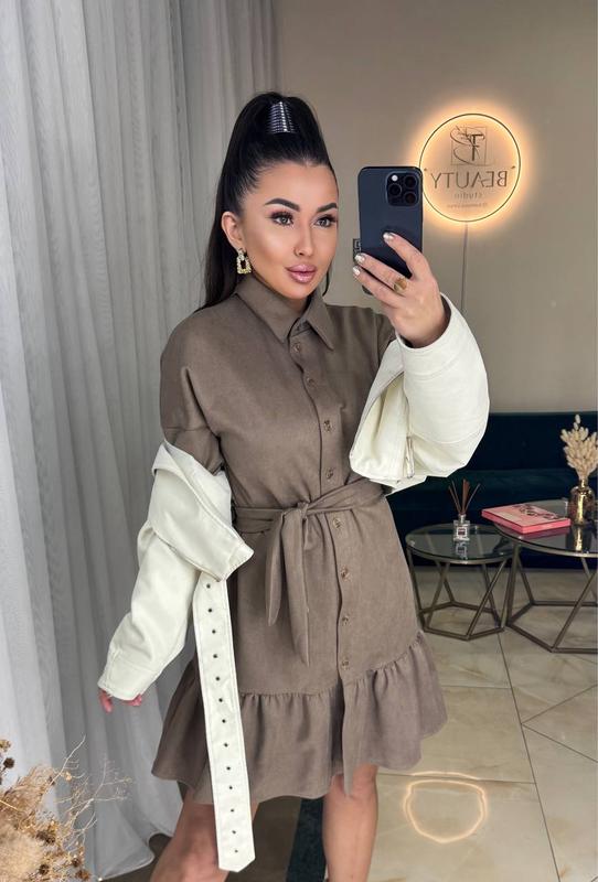 Сукня Артикул: 942-772 Цвет: беж, шоколад и черный Размер: S,M,L,XL Материал: замш (очень качественный, приятный на ощупь, не тонкий) Фото реал Застегивается платье на пуговицы, в комплекте пояс