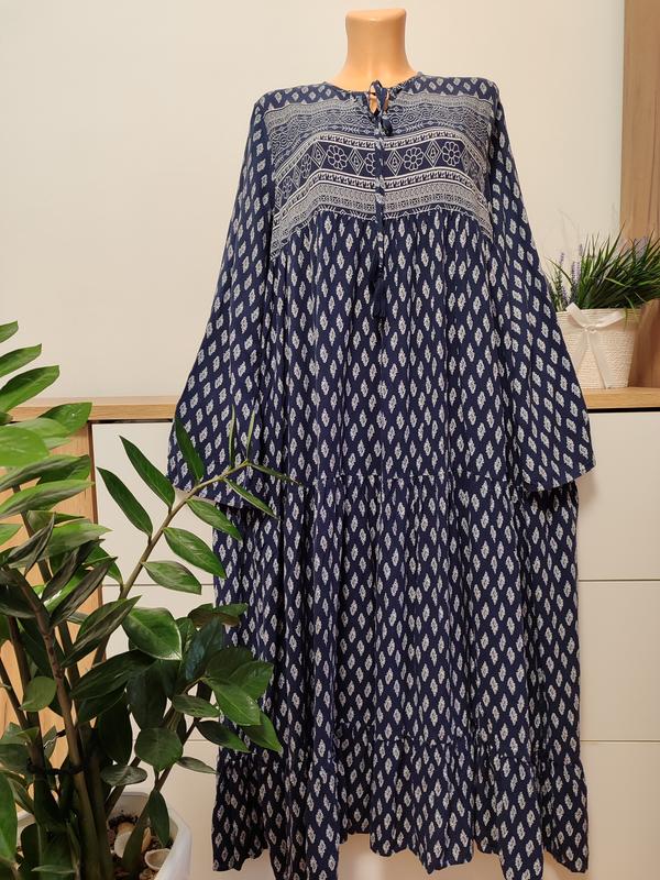 Выполнена из легкой натуральной ткани (бирка со сборкой срезанная,merю, что это хлопок), которая мягко струится! Ее украшает цветочный белый принт и геометрический орнамент. Имеет свободный крой, который дает комфорт и свободу движений.Длина127, ПОГ 55, талия и бедра свободны. крести подписываться, есть много хороших вещей и частое обновление товара!