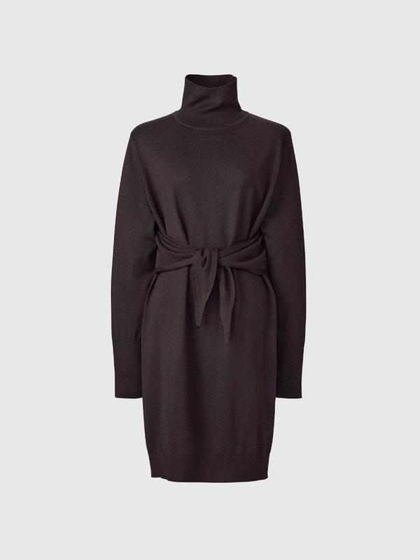 СУКНЯ UNIQLO мини из шерсти меринос Из коллекции Uniqlo U, разработанной Кристофом Лэмером и Сарой-Лин Тран. ✅ ТЕМНИЙ ШОКОЛАД M -2 в наличии ❤️ ИДЕАЛЬНАЯ МЕРИНОСОВАЯ СУКНЯ, СРЕДИЧНОЙ ЩИЛЬНОСТИ, ДУЖЕ УДОБНАЯ И УНИВЕРСАЛЬНАЯ - Платье в уникальном дизайне 3 в 1. - Смесь тонкой мериносовой шерсти. - Длина до колена, объемный силуэт. - Вырезы на рукавах. - Водолазка сохраняет тепло шеи и шеи. - Вязаный палантин можно носить как шарф, капюшон или на талии. - 50% шерсть мериноса, 50% полиакрил - ручная стирка
