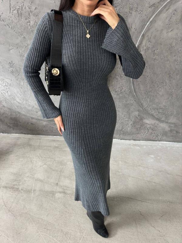 Женское теплое платье-миди с длинными рукавами и юбкой клеш