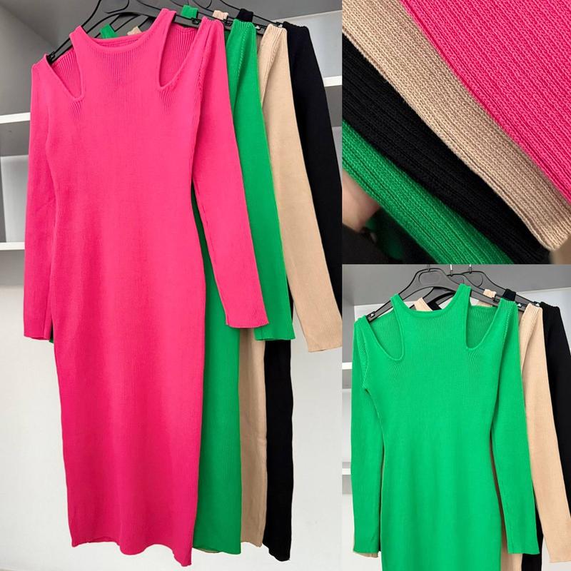 Яркие, трендовые платья😍 Отличное качество, не кашлатятся. Отлично тянутся. Цвета: малиновый, зеленый, черный, бежевый🩷💚🖤🧡 Размер универсальный ПОГ 50, рукав 63, длина 108см.