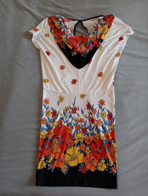 Платье с ярким цветочным принтом. Размер S. Состав: 80% хлопок, 10% полиэстер, 10% лайкра.
