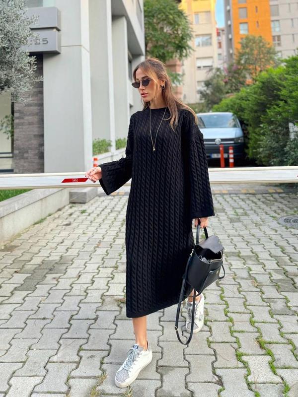 Платье длинное Машинная вязка Производитель Турция Цена: 1200 грн Мод 1397 Размер универсал 42-48 Материал : 70% Acrylic, 30% wool Длина 120 см Обьем 110 см в свободном состоянии Цвет: черный