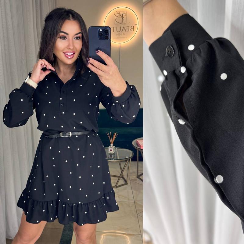 Сукня арт. rkot. 447 Размеры: S, M, L, XL Цвет: черный Ткань: костюмная (мягкая и приятная на ощупь) Модель свободного покроя, с длинным рукавом, манжет и планка по груди застегиваются на пуговицы. Можно носить с поясом и без. Пояс входить до комплекту. Отличное качество. Цена 650 грн