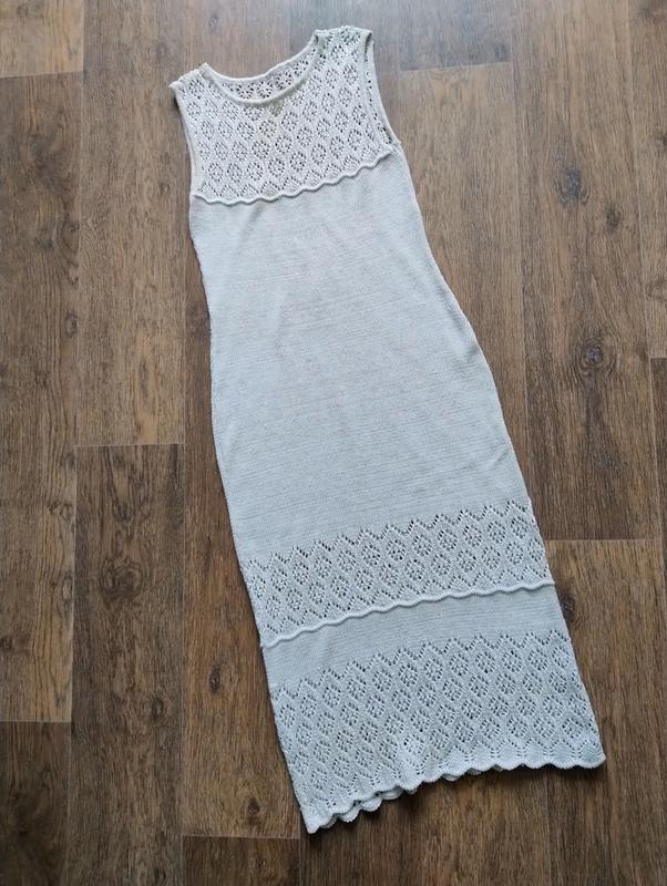 Стильное льняное вязаное ажурное платье midi на пляж хлопок+ лён