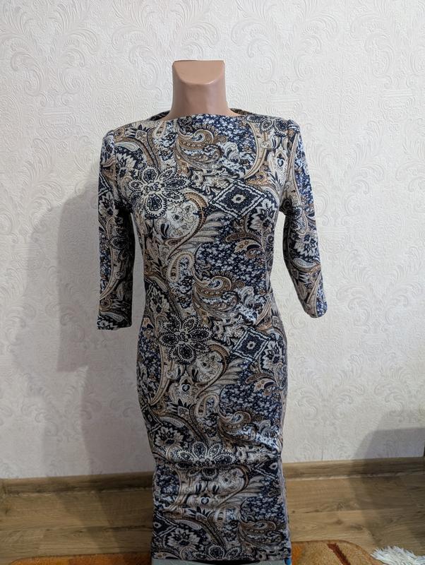 Трикотажное приталенное платье.Очень приятное к телу, можно сказать что новое.Трех четвертний рукав. Плечи 37 см ПОГ 42 см ПОТ 37см ПОБ 47 см Рукав 41 см