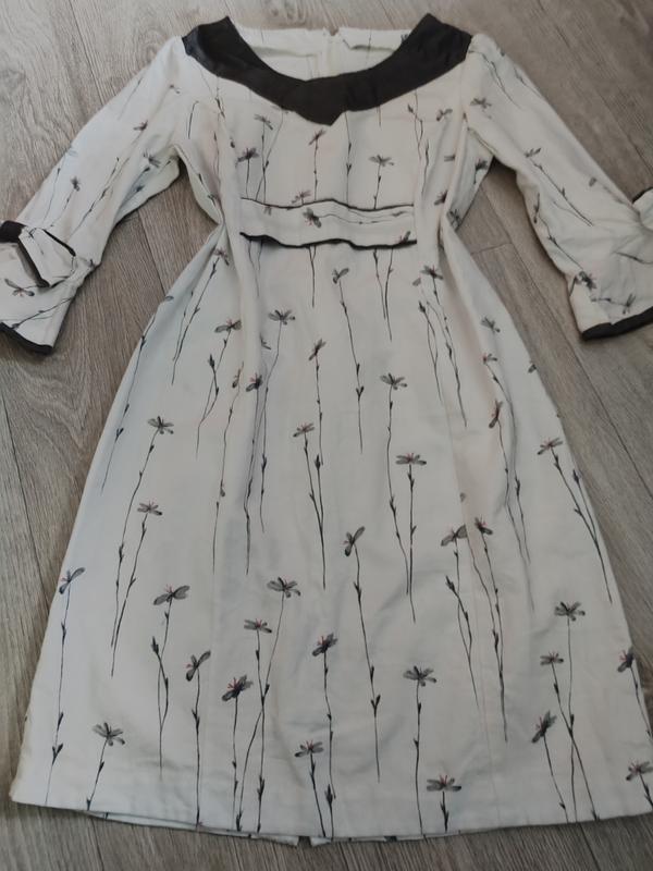 Необычное красивое винтажное платье. Льон. Красивые цветы на белом фоне в стиле "botanica". Замочек на спинке. Можно носить под ремень. Интересные рукава. Состояние красивое. Замеры пог 48см пот 44см длина 90см рукав 44см. В цену входит Ассоциация Шаффи. Укрпошта оплата на карту одразу ( подорожчала доставка).