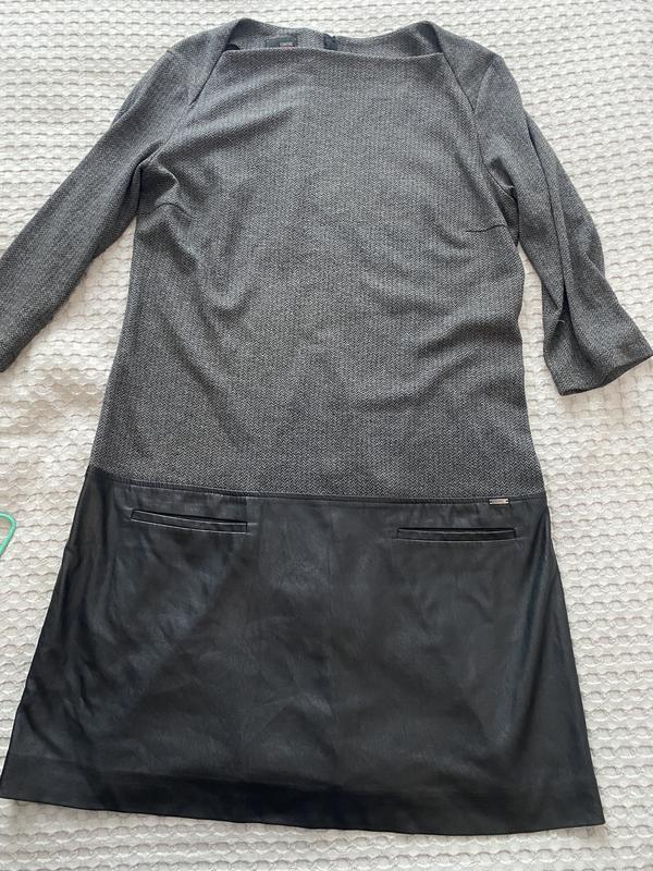 платье женское верх теплое ткань, низ кожаный