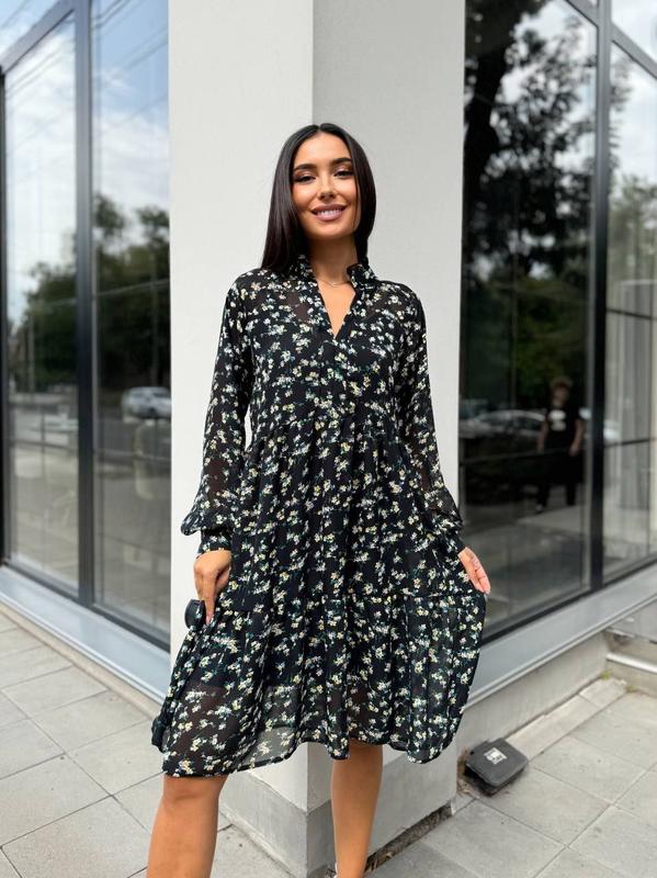 Сукня ✅Модель: 24041 Размеры : 42-44, 46-48, 50-52 Легкое и комфортное платье из шифона средней длины, свободного кроя, рукав длинный, на пуговицах. Подкладка трикотажная Тканина : шифон Цвета: голубой, черный, черный букетик, черный мелкий цветочек, синий мелкий цветочек, пудровый, розовый Размеры: 42-44,46-48,50-52 Объемгрудей: 96, 104, 110 Объем бёдер: свободный Длина рукава: 71, 72, 73 Длина изделия : 99, 100, 101 Категория: Платье