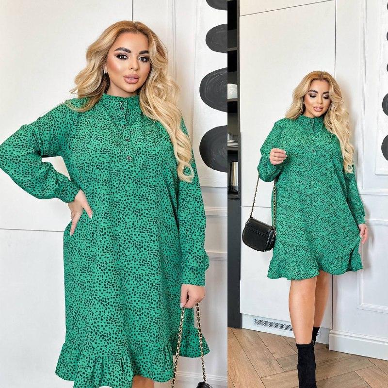 Наша гарна новинка Жіноча сукня Розмірний ряд 42-46,48-52,54-58 Кольори чорний Тканина софт (мʼяка та приємна на дотик) Колір чорний в горошок, зелений в камінці , квіточки рожеві мілкі, Модель вільного покрою,з довгим рукавом, манжет та планка по груді застібаються на ґудзики Можно носити з поясом так и без Супер якість Розміри повномірні Заміри 42-46 Ог 110-112 Об. 112 довжина 95 см 48-52 Ог 120-122 Об 122 довжина 97 см 54-58 Ог 130-132 Об 132 довжина 99 см Довжина рукава 63 см на пуговиці Одягнений 48-52 Параметри моделі 106 80 107 Зріст 165см ои