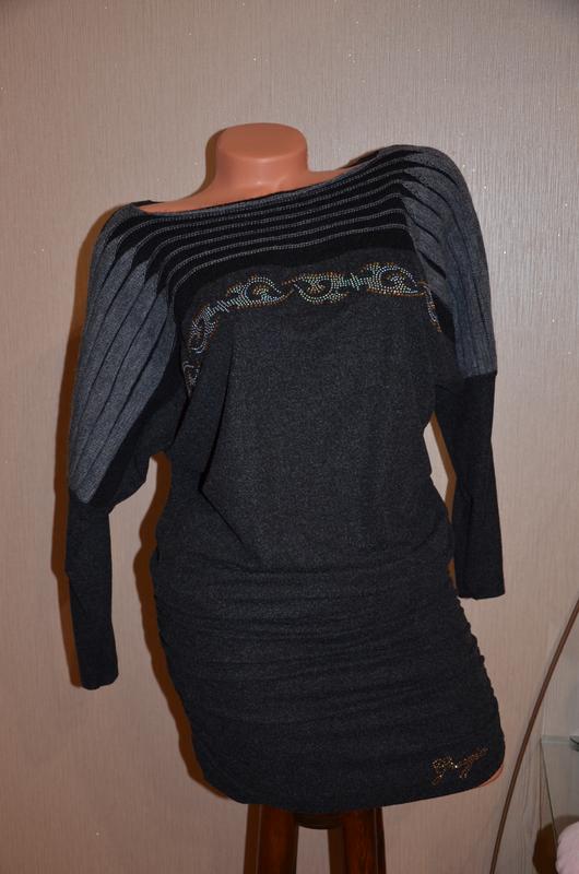 Очень интересное платье.За счет сборок по бокам, длину регулируете сами!Это позволяет сделать ие, как ниже колена, так и мини.Завдние фасона скрывает все недостатки фигуры.Размер 44-46