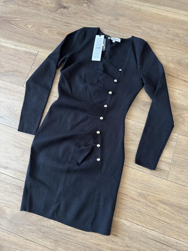 Платье вязаное новое очень хорошего качества, приятное на ощупь. Интересный крой. Заміри на фото. При покупке двух вещей - третья в подарок.